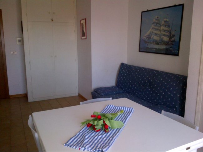In zona residenziele centralissima a pochi passi dal viale principale proponiamo in vendita appartamento bilocale sito al 3° ed ultimo piano (no ascensore) composto da soggiorno con angolo cottura e divano letto matrimoniale, camera da letto dove trovano posto un letto matrimoniale e un letto a castello, bagno con accesso dalla camera da letto, balcone con vista panoramica. Distanza dal mare 500 metri.